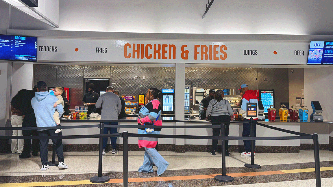 The Impact: The redesign introduced a sense of visual breathability to a busy arena concourse and improved the wayfinding experience with the integration of key menu item lists at each location.
